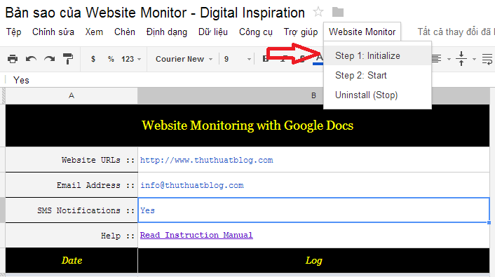 Bước 3: Nhấn Website Monitor, chọn Step 1: Initialize