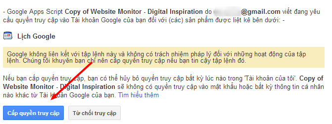 Tiếp tục cấp quyền truy cập Google Calendar.